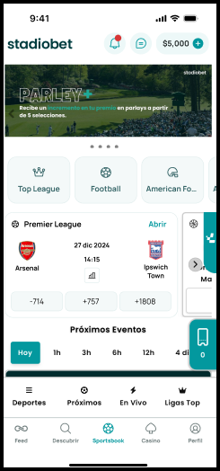 La sección Sportsbook de Stadiobet es el corazón de la plataforma de apuestas deportivas. Es donde los usuarios pueden realizar apuestas en tiempo real o para eventos futuros, con categorías organizadas por deportes, ligas y eventos destacados.