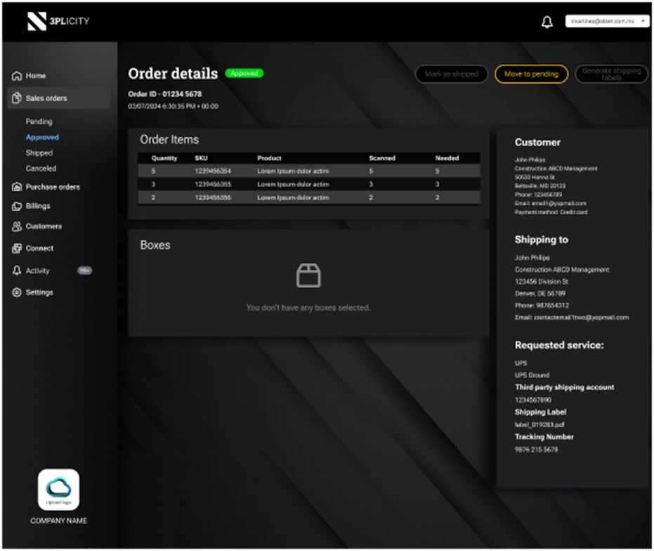 - El pedido se moverá a la sección "Approved Orders" y su estado cambiará a "Approved" en verde.