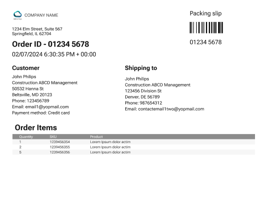 Esto dirige a los detalles de envío específicos para organizar los artículos en la orden, donde podrás ver los elementos descritos abajo.Cuando el usuario selecciona múltiples órdenes e imprime un packing slip, el documento contiene una lista con todas las ordenes seleccionadas en el mismo documento y un código de barras, que al ser escaneado, dirige al operador a la vista de detalles de orden con los items necesarios para su llenado.