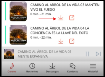 - Toca una clase desde la lista de descargas para abrir el reproductor.