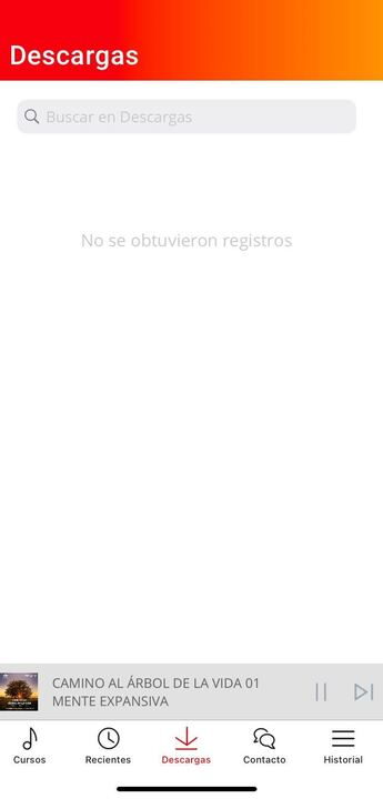 - La página muestra el título Descargas en la parte superior, junto con una barra de búsqueda.