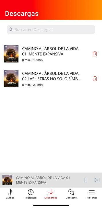 - La descarga se inicia, y al finalizar, el ícono cambiará a un ícono de papelera, indicando que la clase está almacenada localmente.