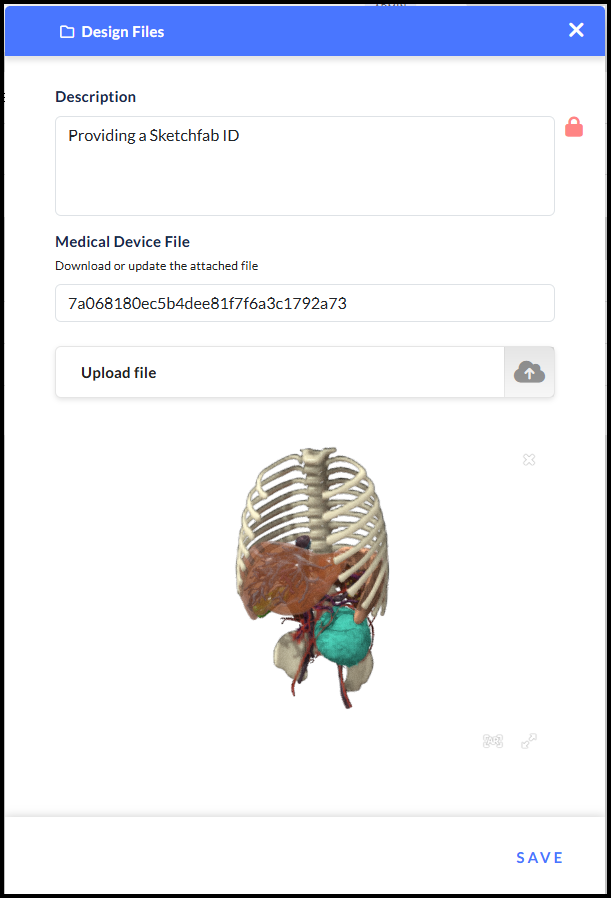 El uso de Sketchfab permite a los usuarios visualizar modelos 3D directamente dentro de la plataforma al ingresar un ID válido. Siguiendo estos pasos, los usuarios pueden subir, visualizar y validar modelos dentro del flujo de trabajo de un expediente y dispositivo.