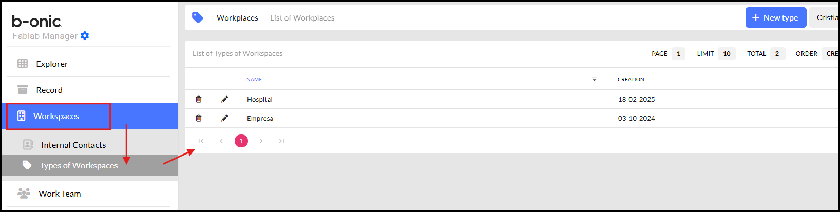 - Hacer clic en el icono de lápiz: Selecciona el tipo de centro de trabajo que deseas editar.