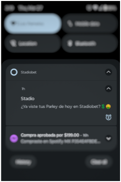 Notificación push: Aparecerá en el dispositivo móvil de cada usuario, similar a otras notificaciones de la app.
