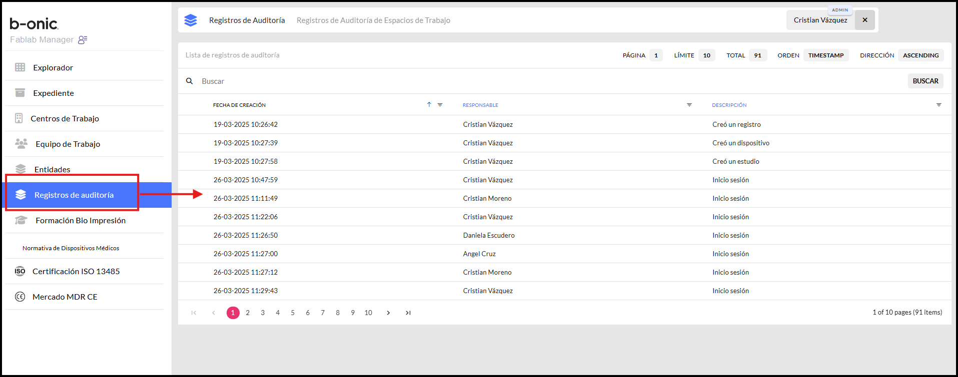 La plataforma B-onic cuenta con un sistema de registro de auditorías que permite a los usuarios con roles de Auditor, Administrador, y Super Administrador acceder a un listado detallado de todas las acciones realizadas dentro del sistema. Este registro de auditorías facilita la supervisión y el control de actividades clave, asegurando la trazabilidad de las operaciones dentro de la plataforma.
