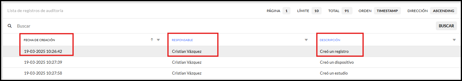 Fecha y hora: Momento exacto en que se realizó la acción.