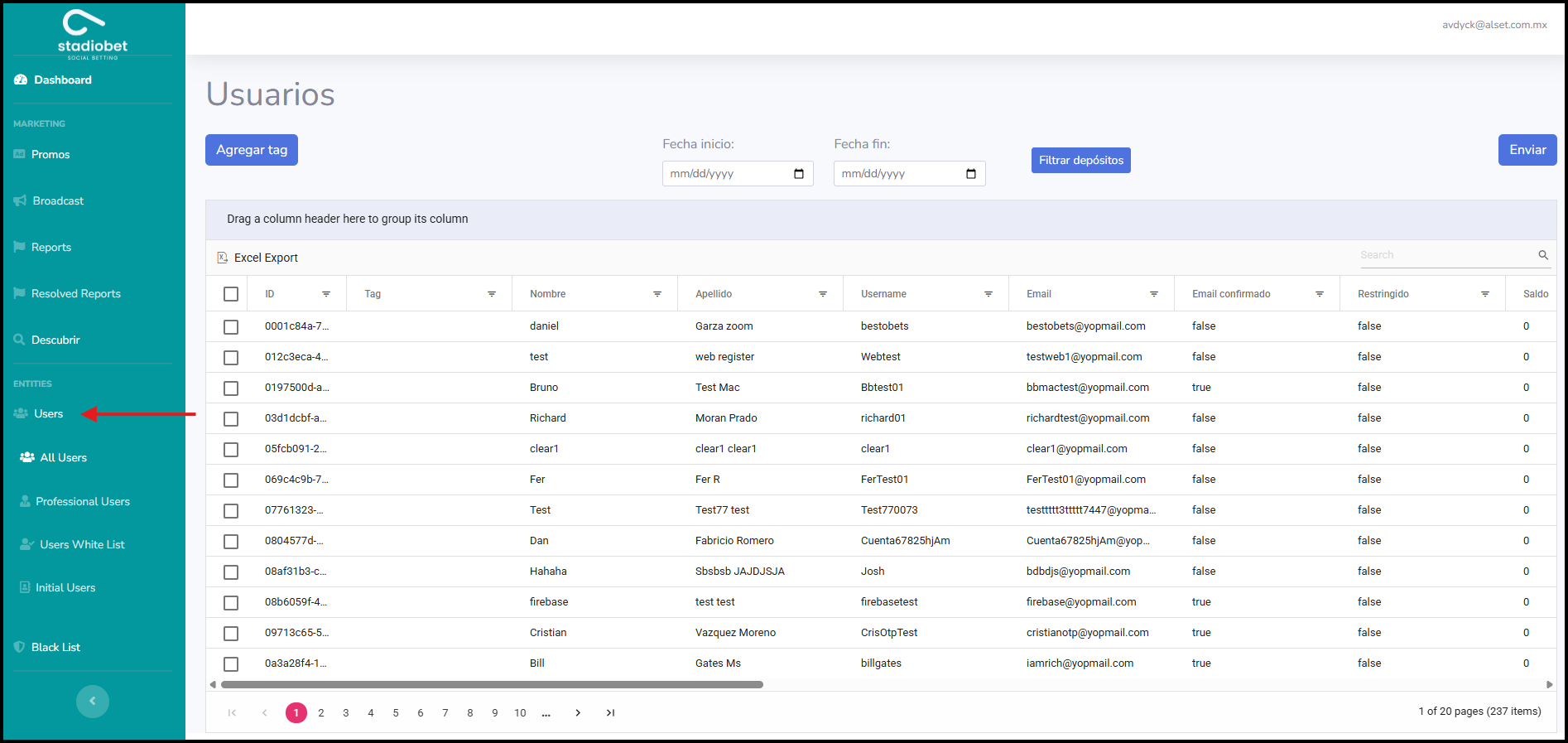 Esta funcionalidad permite a los administradores de Stadiobet tomar decisiones más informadas sobre campañas, recompensas o monitoreo de comportamiento dentro de la plataforma. La combinación de filtros y asignación de etiquetas mejora la segmentación y gestión de usuarios de forma eficiente.