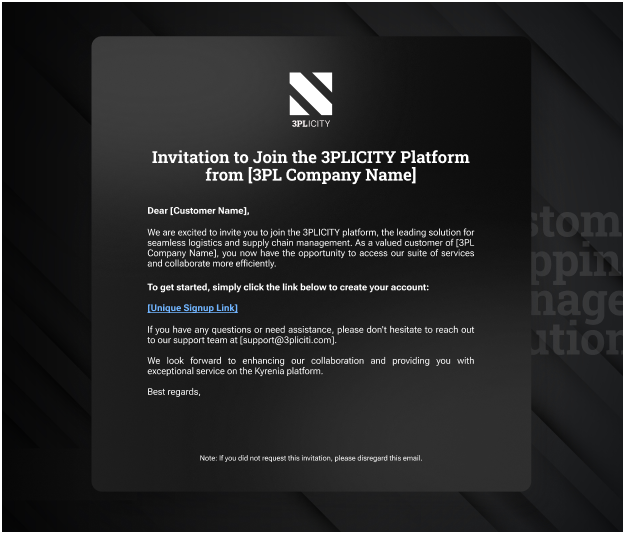 During the onboarding process, 3PLICITY allows you to invite your customers (merchants) to join the platform. You can add them individually or upload multiple entries at once.