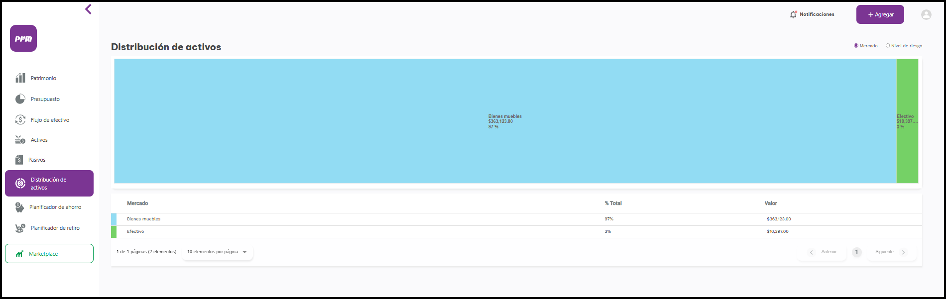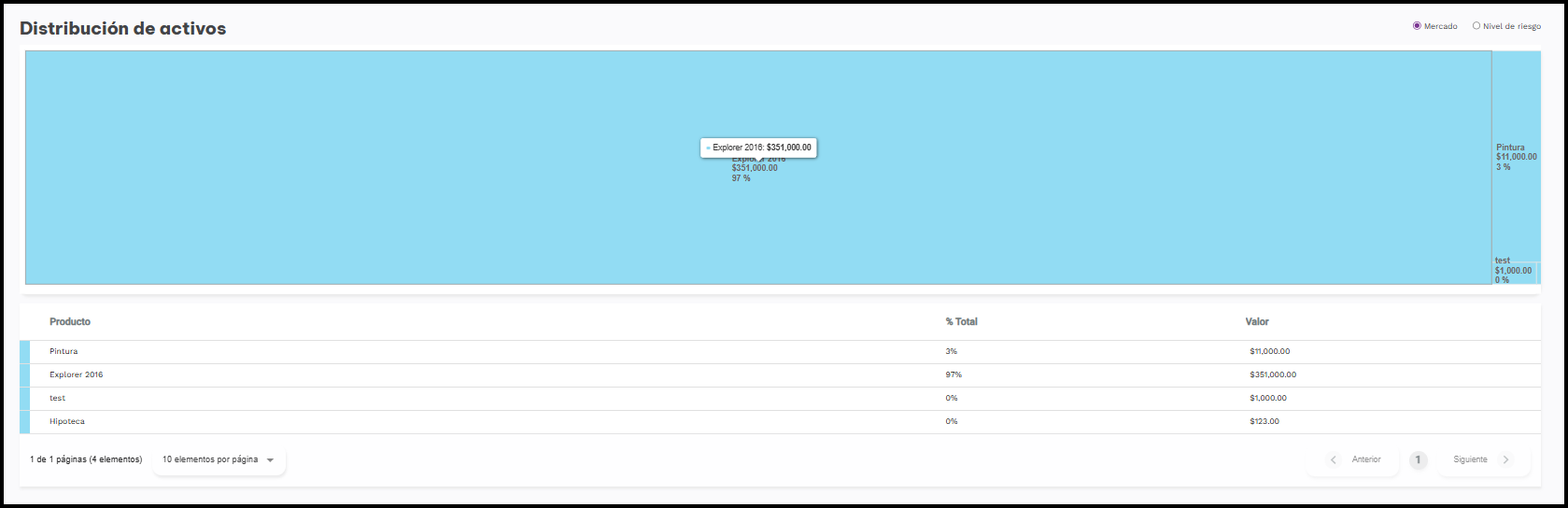 Nivel de Riesgo: permite visualizar la distribución por riesgo de cada activo.