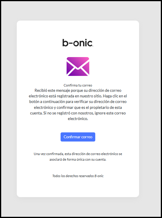 Revisa tu bandeja de entrada y abre el correo de confirmación enviado por B-Onic.