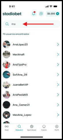 Si el usuario existe, verás una lista de coincidencias.