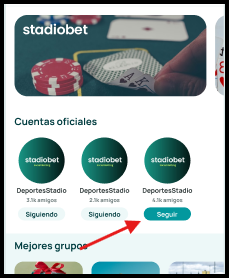Si aún no perteneces a un grupo, el botón mostrará Unirse. Al seleccionarlo, se actualizará a Siguiendo.