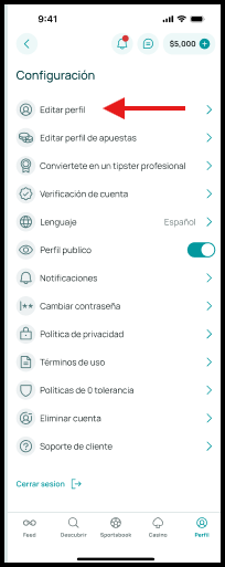 Dentro del menú de ajustes, selecciona la opción Editar Perfil.