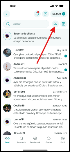 Toca el ícono de Chat en la barra superior.