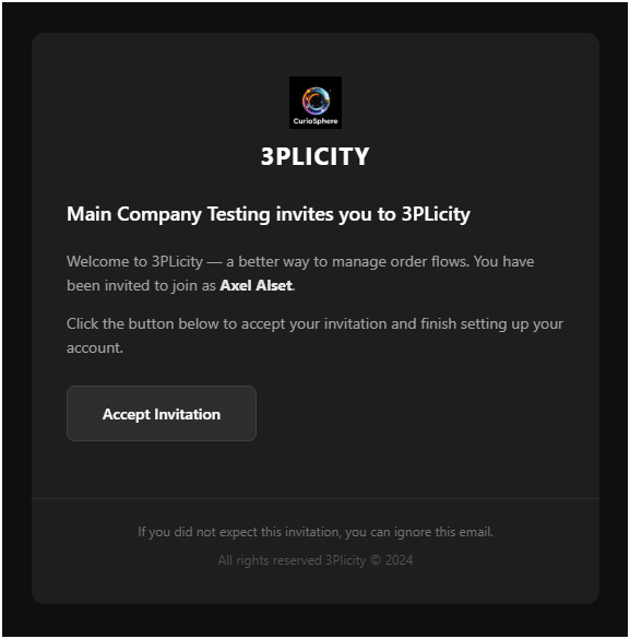 This process ensures that your account is securely created, verified, and connected to the appropriate Company within 3PLICITY.
